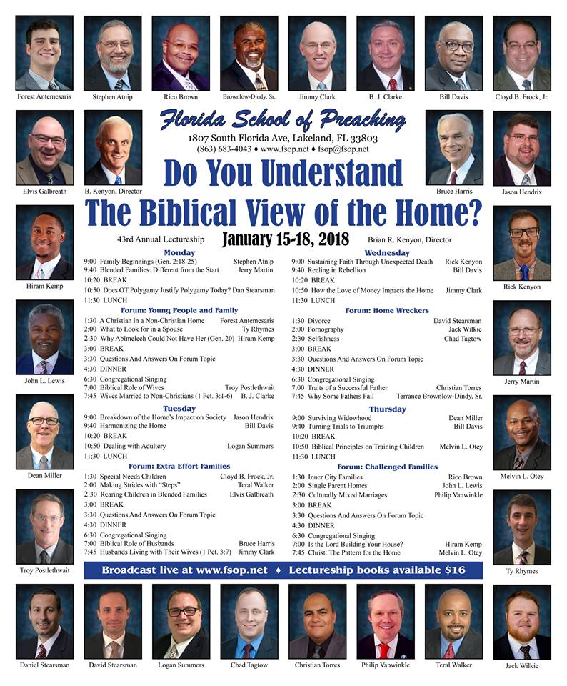 - Florida School of Preaching Lectureships – Jan 18 (Click for Flyer)